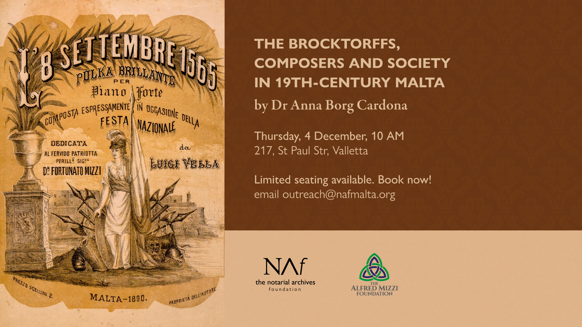The 19th century was a time of significant change and innovation. Lithography was introduced into Malta and embraced by local artists, including the Brocktorffs. Improvements in the pianoforte led to the impressive increase in music outlets in Valletta, and the growth of the amateur performer. At the same time composers recognised an opportunity to publish their own music for the growing local market. They chose the Brocktorff Press. Nothing could provide a more fascinating mirror of the age, or better expose the influential individuals in Malta’s society, than this salon music intended largely for local consumption.